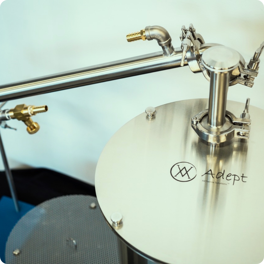 Doublez votre potentiel, gardez la simplicité. Grand frère du Nano, l’Adept offre deux fois plus de volume pour vos projets de recherche ou de petite production, tout en restant transportable. Utilisable sur une simple cuisinière ou un réchaud, il permet de distiller huiles essentielles et hydrolats avec une efficacité professionnelle, où que vous soyez.